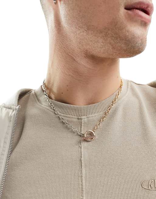 Icon Brand - Fluidity - Collana con catenina oro e argento con barretta a T