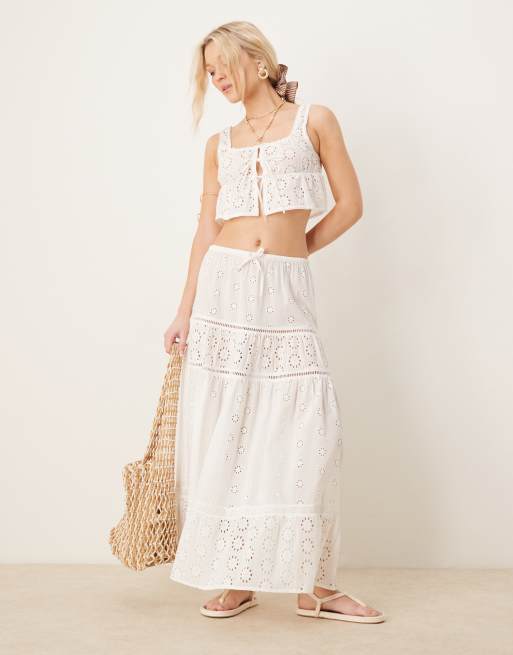 Iisla & Bird - Gonna lunga da mare a balze bianca in pizzo sangallo in coordinato