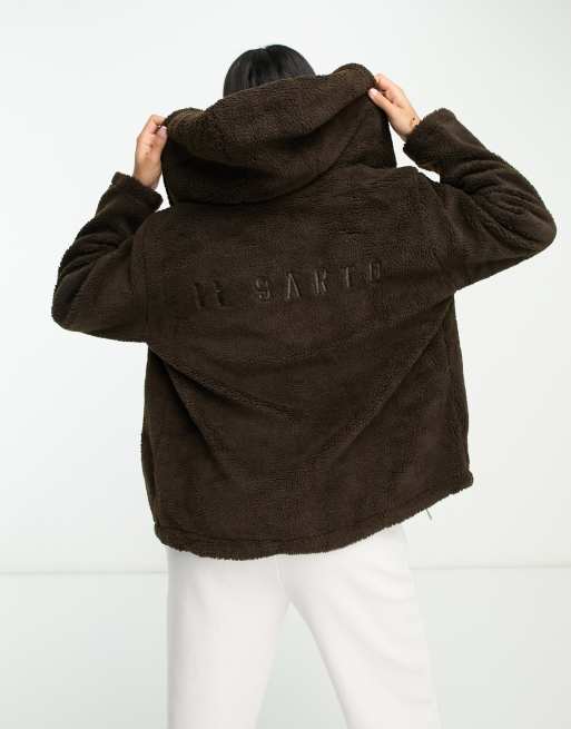 Il Sarto - Giacca oversize in pile borg marrone cioccolato con cappuccio