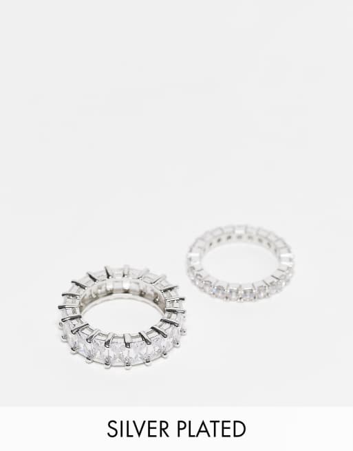 Image Gang - Confezione da 2 anelli placcati argento con cristalli baguette