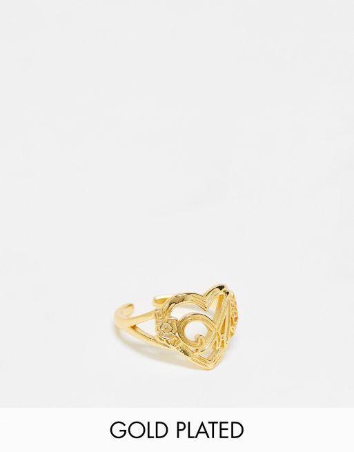 Image Gang - Anello placcato oro 18 k regolabile a forma di cuore con iniziale "A"