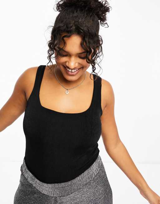 Esclusiva In The Style Plus - Body nero aderente con scollo squadrato