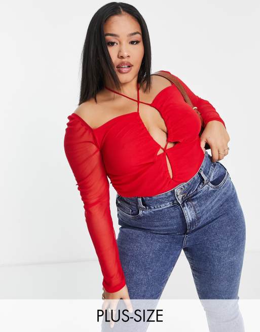 In The Style Plus x Liberty - Body allacciato al collo rosso con fascette