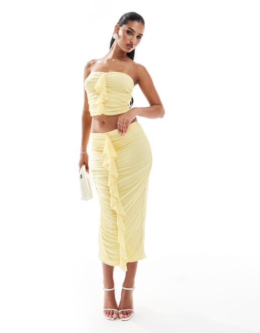 Esclusiva In The Style - Coordinato con top a fascia con volant sul davanti e gonna lunga giallo