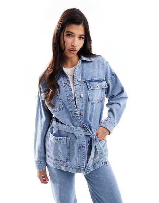 In The Style - Giacca in denim blu con cintura