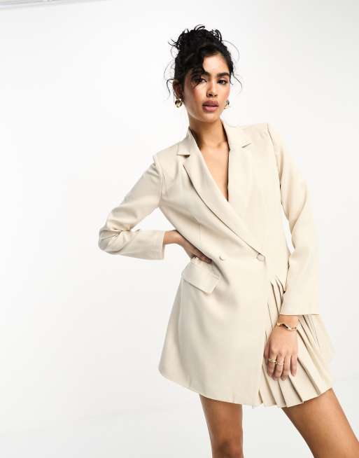 In The Style Plus - Vestito blazer color crema con fondo a pieghe