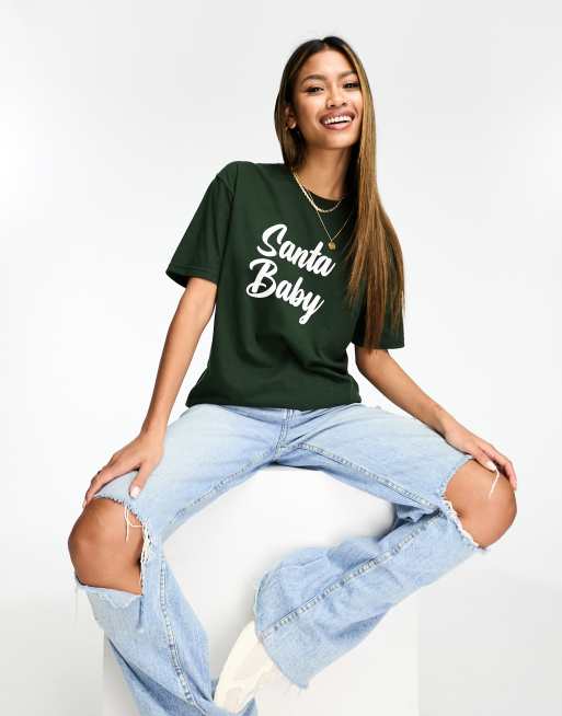 In The Style - T-shirt natalizia verde smeraldo con motivo "Santa Baby"