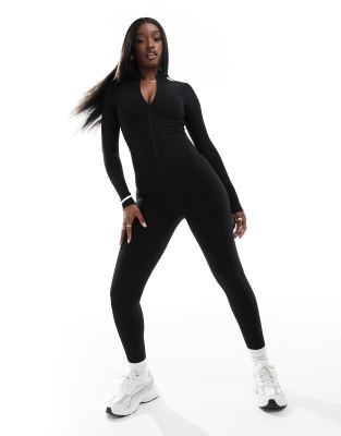 In The Style - Tuta aderente nera a maniche lunghe con zip