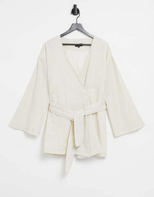 In The Style - Vestito avvolgente stile kimono bianco sporco effetto lino con cintura
