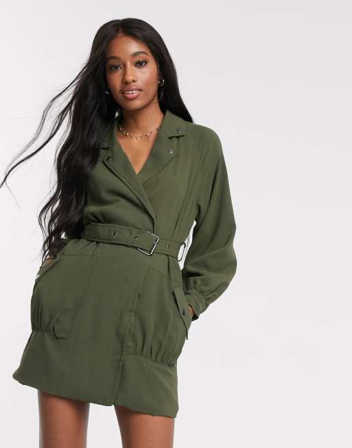 In The Style x Jac Jossa - Vestito biker con cintura color kaki