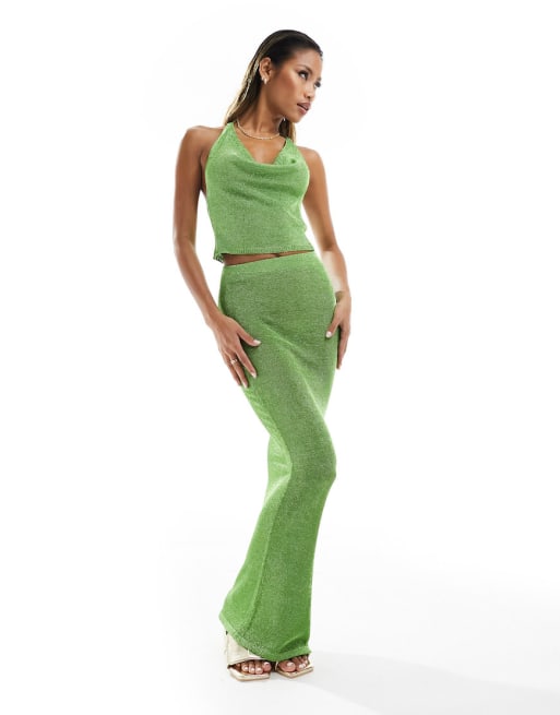 In The Style x Perrie Sian - Coordinato con gonna lunga e top allacciato al collo in maglia metallizzata