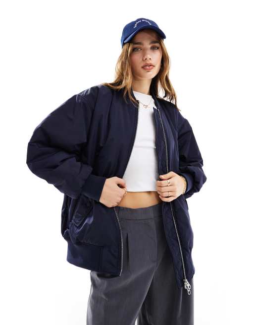 InWear - Terra - Giacca bomber blu navy con maniche arricciate