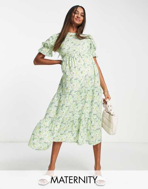 Influence Maternity - Vestito grembiule midi verde a fiori