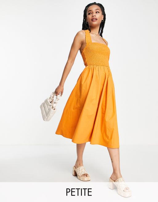 Influence Petite - Vestito con gonna al polpaccio con spalline incrociate color ruggine