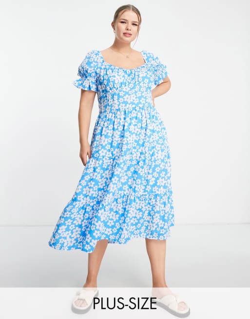 Influence Plus - Vestito midi con scollo Bardot blu a fiori