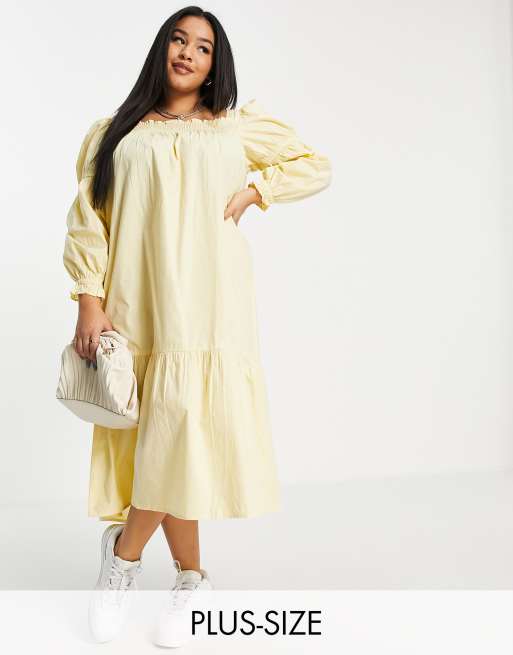 Influence Plus - Vestito midi in popeline di cotone giallo