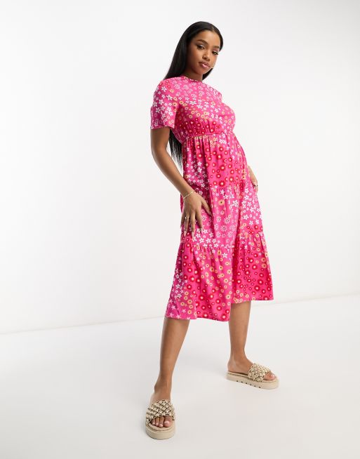 Influence - Vestito da giorno midi rosso con stampa a fiori mista e maniche con volant