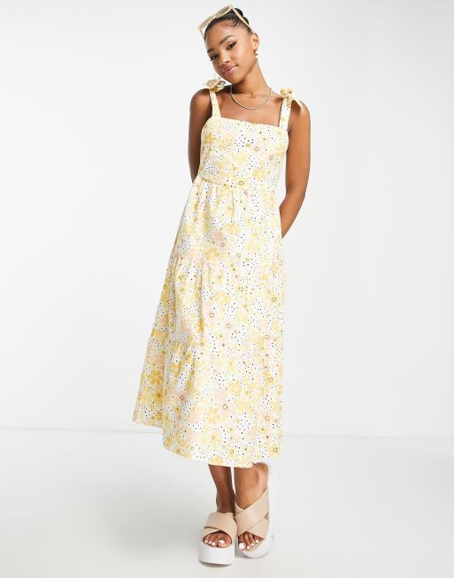 Influence - Vestito midi a balze con spalline annodate a fiori