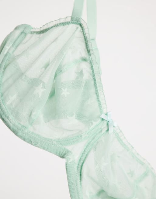 Ivory Rose Curve - Completo intimo trasparente a rete con stelle color menta a vita alta