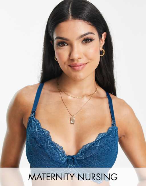 Ivory Rose Maternity Coppe Grandi - Reggiseno per l'allattamento con ferretto e non imbottito in pizzo verde-azzurro