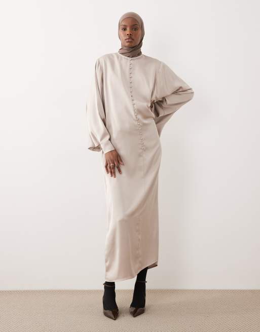 IYAL - Caftano color ostrica a maniche ampie con bottoni
