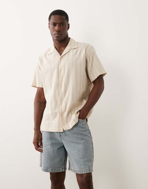 Jack & Jones - Camicia a maniche corte in misto lino beige a righe