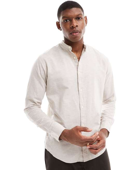 Jack & Jones - Camicia in lino con collo serafino beige