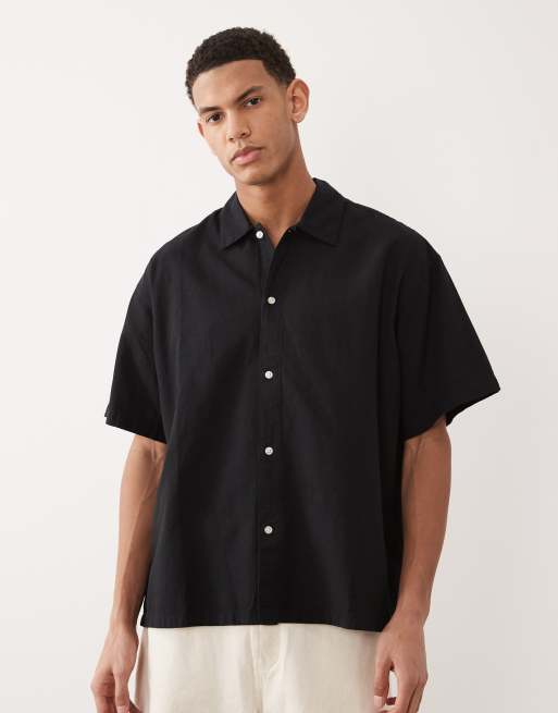 Jack & Jones - Camicia oversize a maniche corte in misto lino nera