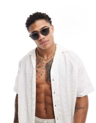 Jack & Jones - Camicia oversize in seersucker di lino bianca a righe con rever
