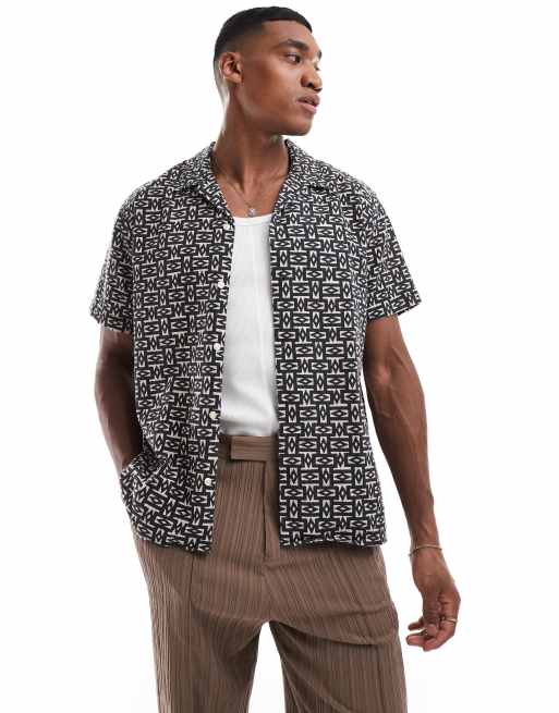 Jack & Jones - Camicia oversize nera con stampa azteca e colletto a rever