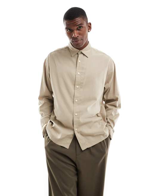 Jack & Jones - Camicia squadrata beige con fondo dritto