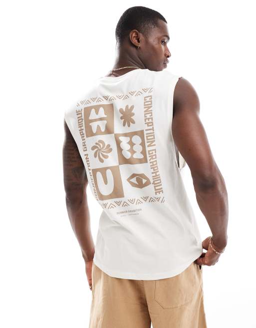 Jack & Jones - Canotta oversize grigio chiaro con stampa di mostra sul retro