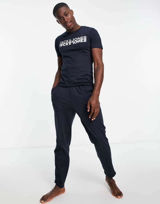 Jack & Jones - Completo da casa con T-shirt e pantaloni blu navy con logo sul petto