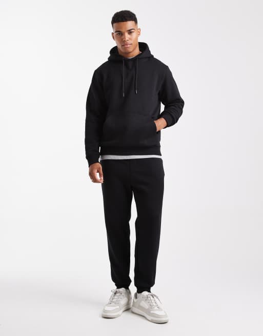 Jack & Jones - Completo nero con joggers e felpa con cappuccio oversize