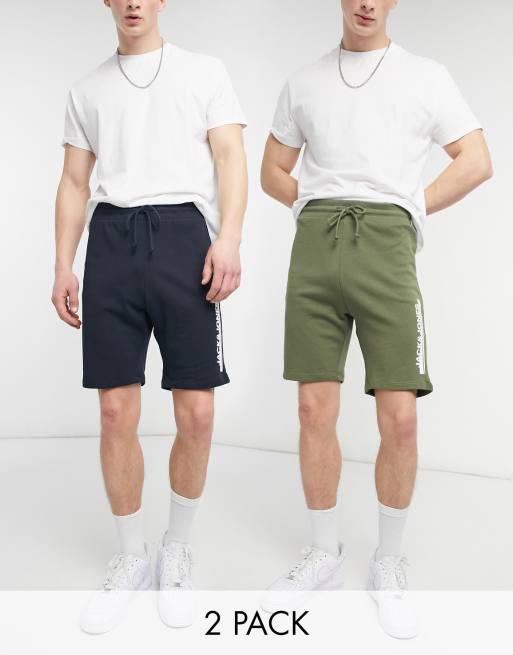 Jack & Jones - Confezione da 2 pantaloncini in jersey blu navy e oliva polvere