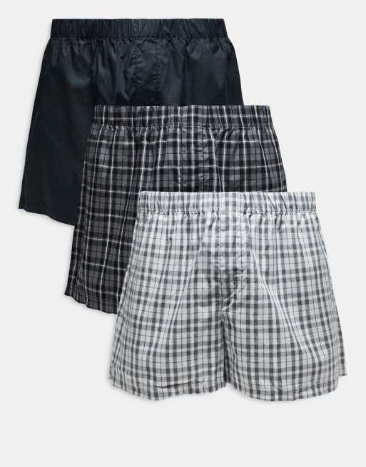 Jack & Jones - Confezione da 3 boxer neri a quadri
