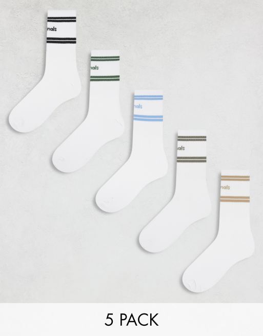 Jack & Jones - Confezione da 5 paia di calzini bianchi con righe