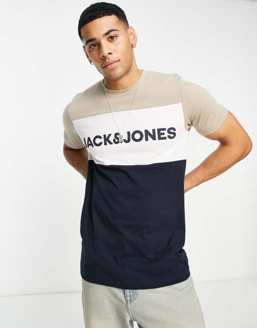 Jack & Jones Essentials - T-shirt beige color block con logo
