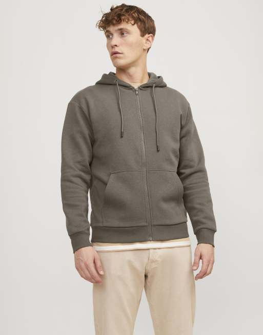 Jack & Jones - Felpa con cappuccio kaki con zip