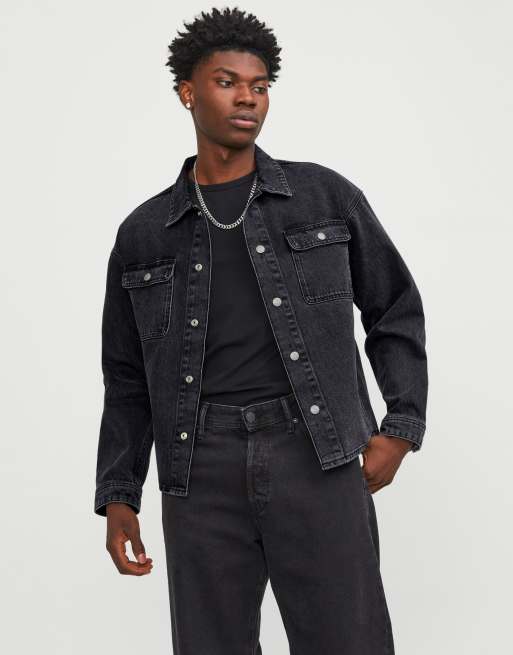 Jack & Jones - Giacca bomber squadrata nera in denim