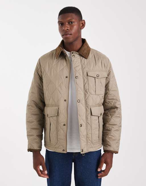 Jack & Jones - Giacca trapuntata beige con colletto in tessuto a coste