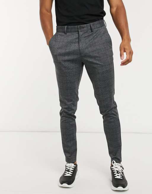 Jack & Jones Intelligence - Pantaloni slim in jersey grigio scuro a quadri
