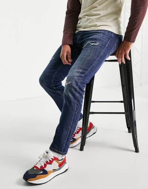 Jack & Jones Intelligence - Tim - Jeans dritti super elasticizzati con abrasioni