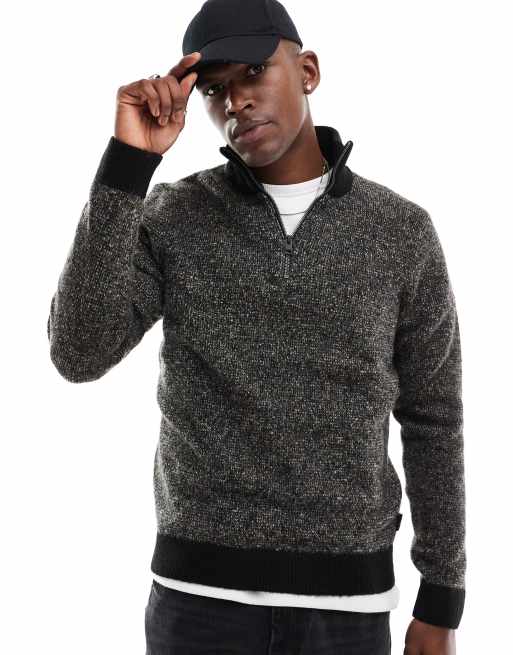 Jack & Jones - Maglione puntinato nero e beige con zip corta