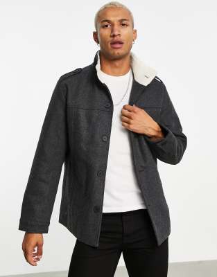 Jack & Jones Originals - Giacca in lana grigia con collo a imbuto con fodera in pile borg