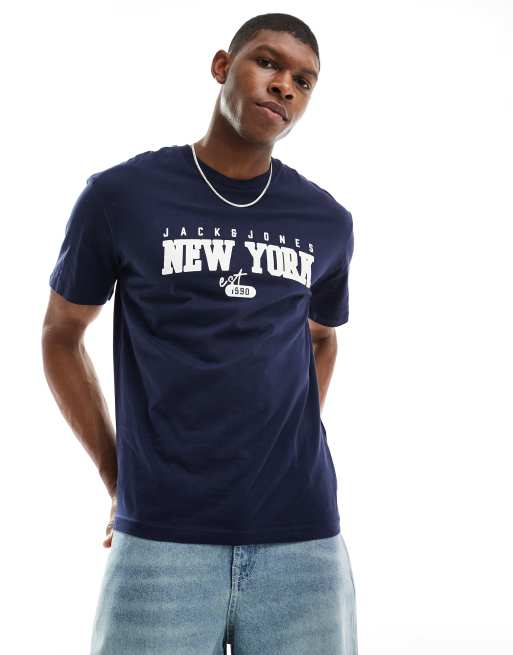 Jack & Jones Originals - T-shirt blu navy con stampa "New York"