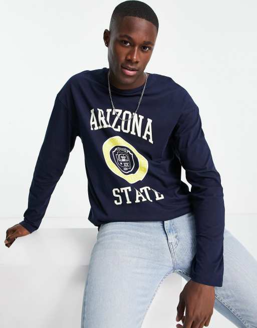 Jack & Jones Originals - T-shirt oversize a maniche lunghe blu navy con stampa "Arizona"