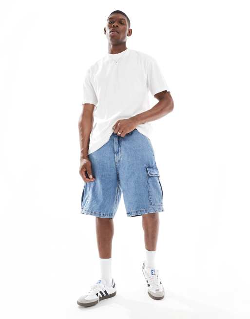 Jack & Jones - Pantaloncini di jeans ampi cargo lavaggio blu chiaro