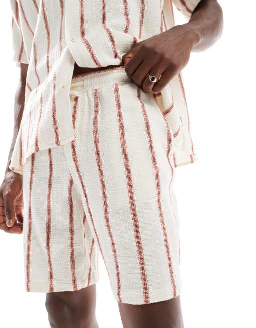 Jack & Jones - Pantaloncini testurizzati bianchi a righe rosse in coordinato