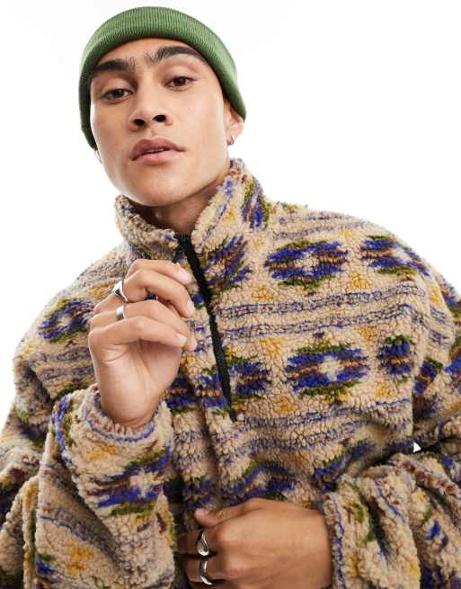 Jack & Jones - Pile pesante neutro azteco con zip corta